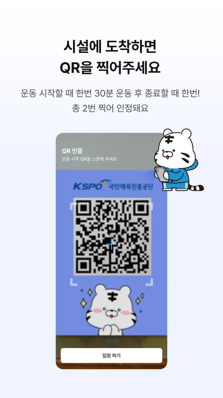 더불어 사용 방법도 매우 단순한데 적립 가능한 스포츠 시설을 방문해서 앱에서 운동 시작 버튼을 누른 다음에 시설에 있는 QR 코드를 스캔하고 최소 30분 이상 운동을 하면 된다.