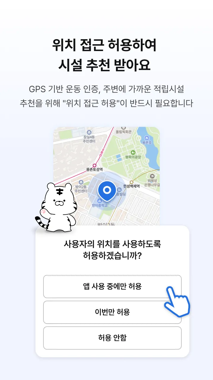 실제로 헬스장, 수영장, 필라테스, 체육관 등 전국에 약 4000여 개의 스포츠 시설인 국민체력100 사업과 연계되어 있으므로, 전국 어디서라도 앱에서 사용자 주변의 적립 가능한 스포츠 시설을 찾을 수 있다.