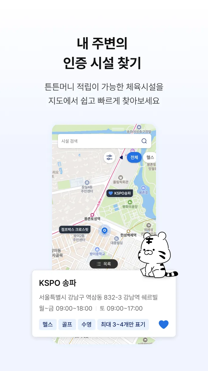 특히 모바일 앱에서 주변의 튼튼머니 인증 시설을 실시간으로 검색할 수 있고, QR 코드를 활용해 운동 시작과 종료를 간편하게 기록할 수 있어서 접근성을 크게 향상하고 있다.