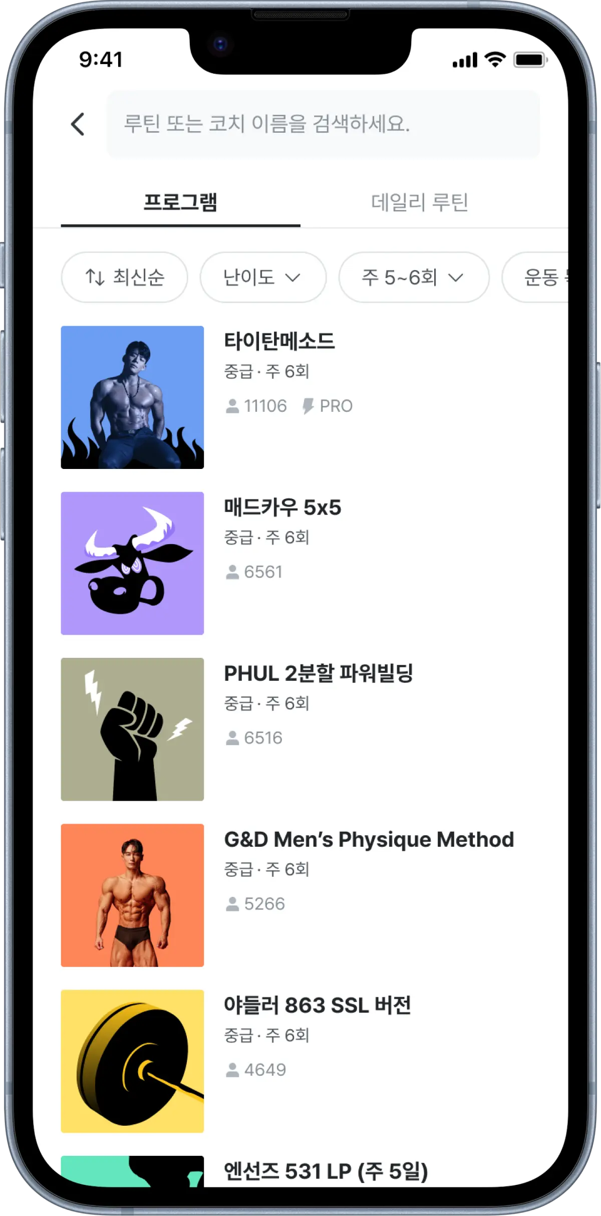 특히 해당 짐워크는 2분할, 3분할 등 필요한 루틴을 무제한으로 만들 수 있으며, 최근 운동 기록과 운동 목적에 따라 근성장할 수 있는 무게 및 세트도 추천해준다.
